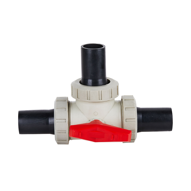 Hoge Prestaties PPH T-stuk Handmatige Socket Kogelkraan Hoge Temperatuur DN15-DN100 Industriële Plastic Klep voor Watervoorziening