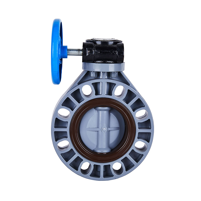 Op maat gemaakte gloednieuwe PVC-C-wormwiel glad staal DN40-1000 vlinderklep, grijs, DIN, JIS, ANSI-standaard, 4-inch kunststof klep met flens ANSI-standaard