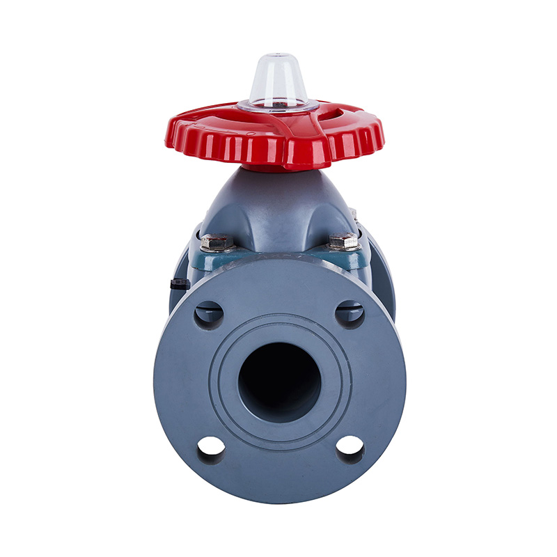 Ultra-duurzame, handmatige PVC-C flensmembraanklep voor hoge temperaturen, voor zure vloeistoffen en watertoevoer, JIS-standaard