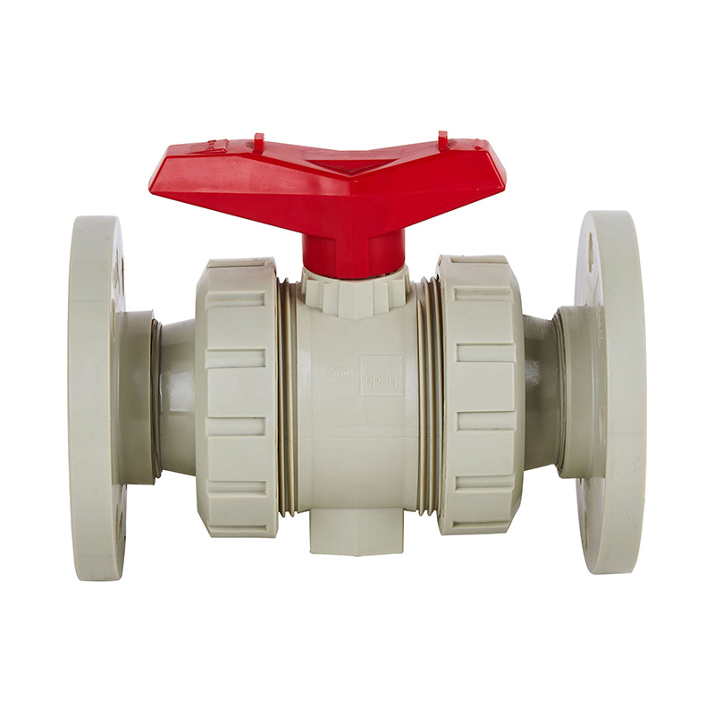 Scherp geprijsde, ultra-duurzame, nieuwe aardegele PPH flenskogelkraan met dubbele mof voor de chemische waterindustrie.
