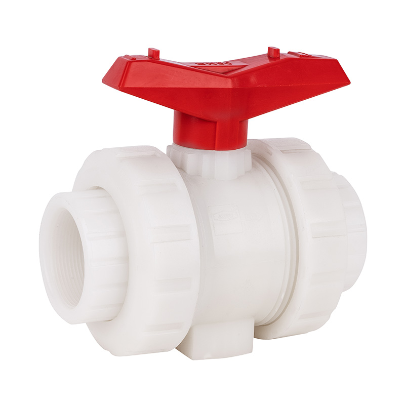 Wit 20 mm-110 mm hoge temperatuur super duurzaam standaard PVDF dubbele Union Socket kogelkraan 1,0-1,6 MPa ISO STD standaard industrie kunststof klep