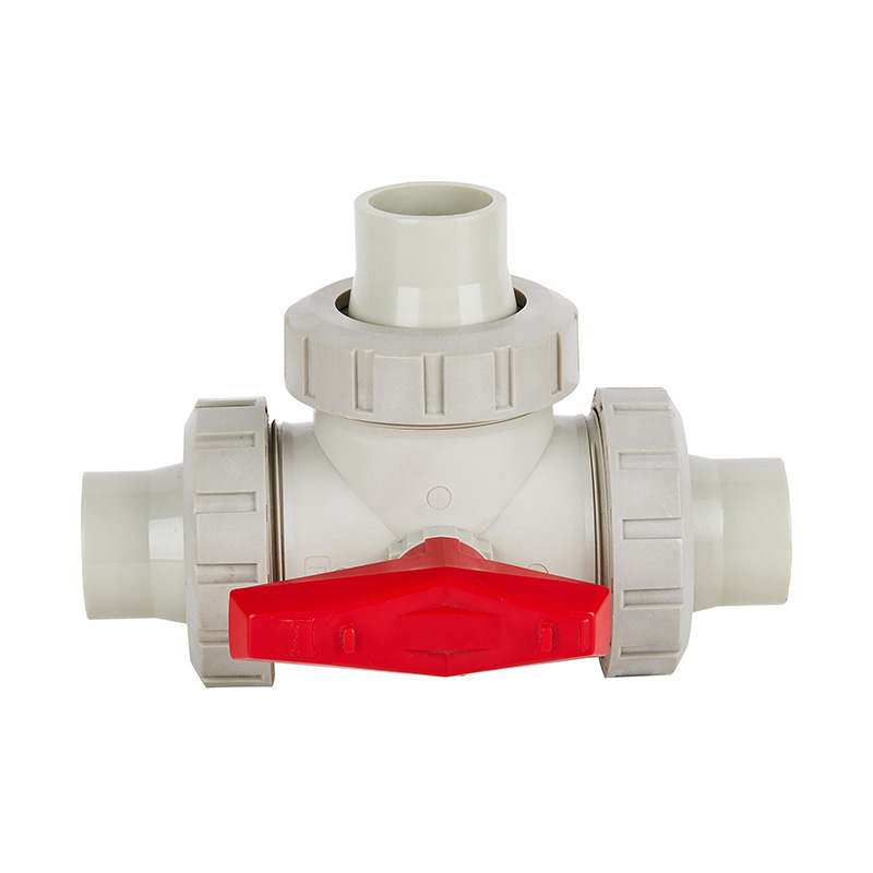 Hoogwaardige fabrieksprijs Aards geel gelast PPH T-stuk Kogelkraan Handmatig recht door hittebestendig DN15-DN100 Industriële en huishoudelijke kunststof klep