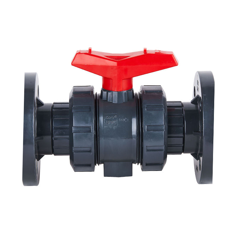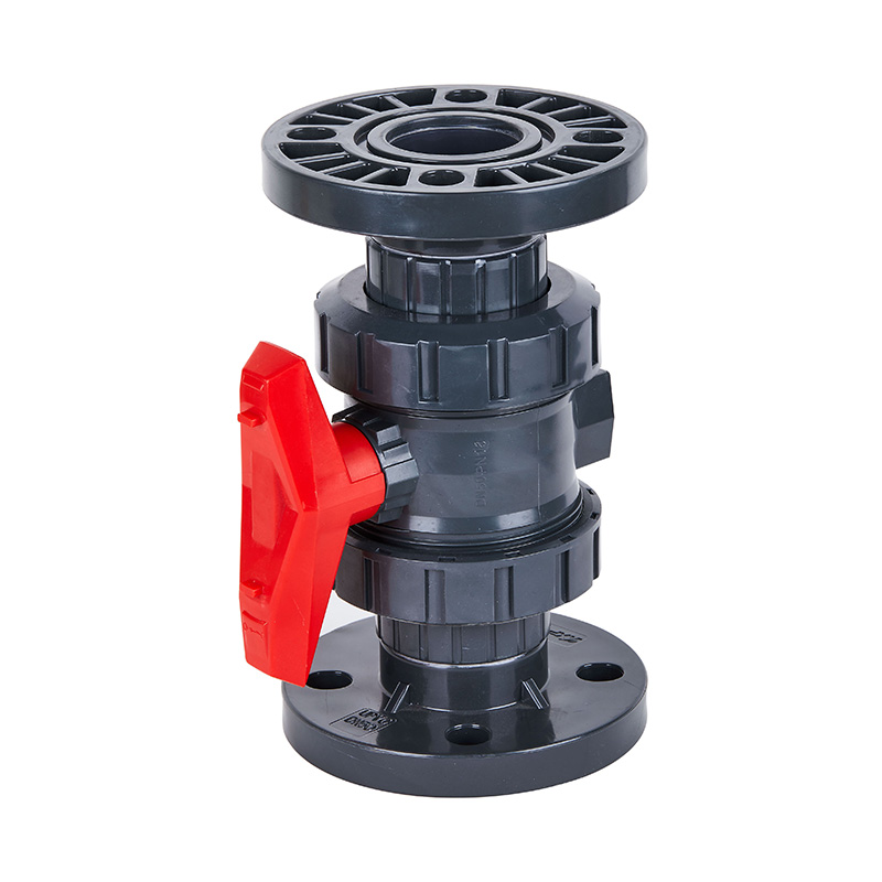 PVC-U Q41F-10U flenskogelkraan met dubbele unie DN15-100 GB standaard