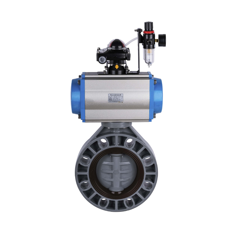 PVC-C pneumatische automatische vlinderklep, middenafdichting, zachte afdichting, DN32-1000, industriële en huishoudelijke kunststof vlinderklep