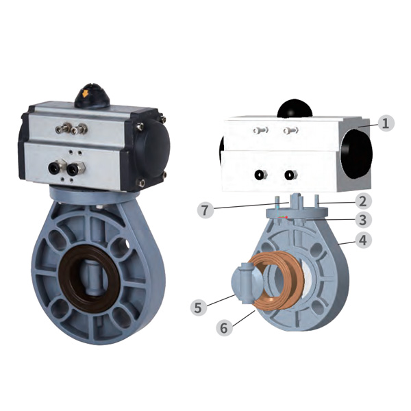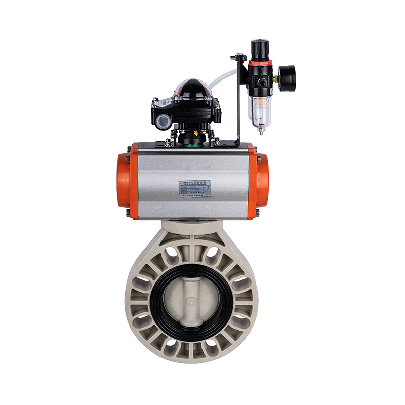PPH pneumatische automatische vlinderklep, zachte afdichting middenafdichting, DN40-1000, industriële en draagbare kunststof klep, JIS-standaard